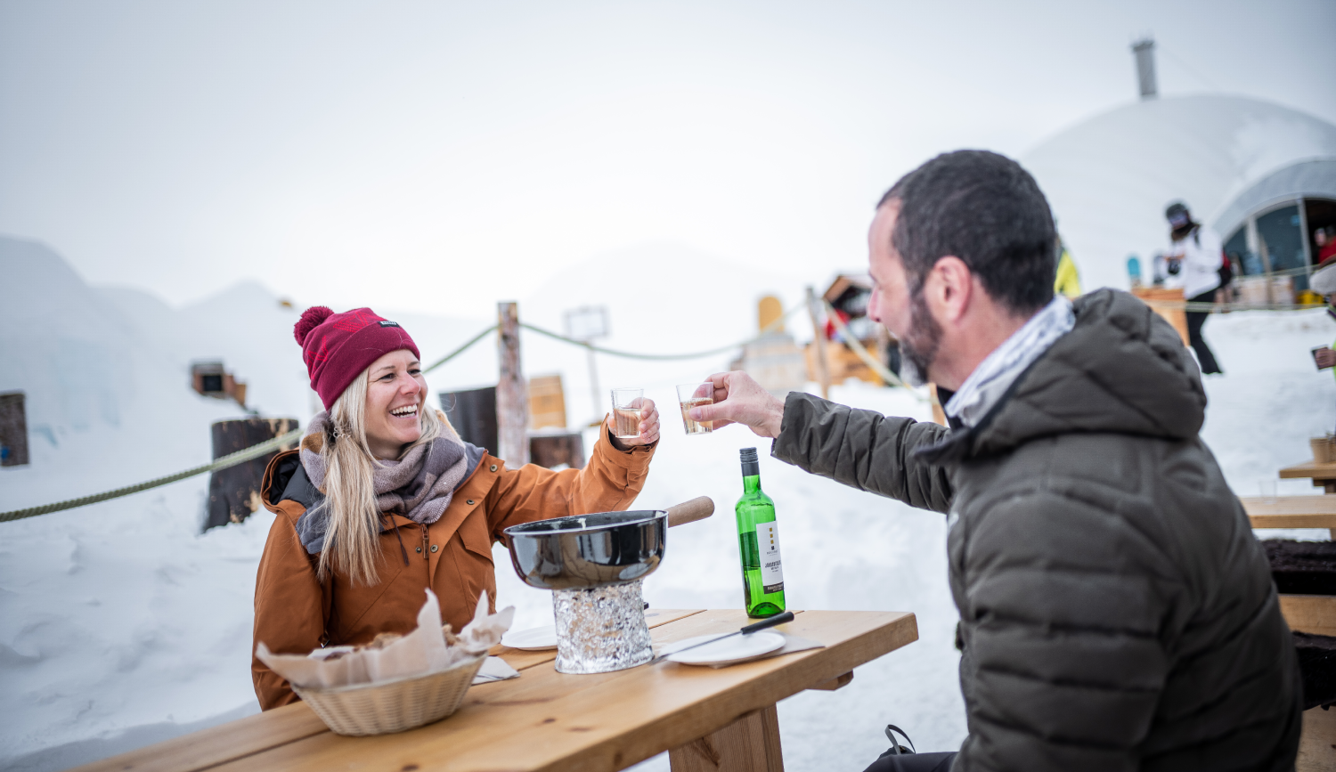 On the mountain, spots to refill and recharge are a must, whether you're skiing, snowshoeing or on the winter hiking trail. That's why you should absolutely drop by the Igloo Village, the perfect place to take a break.