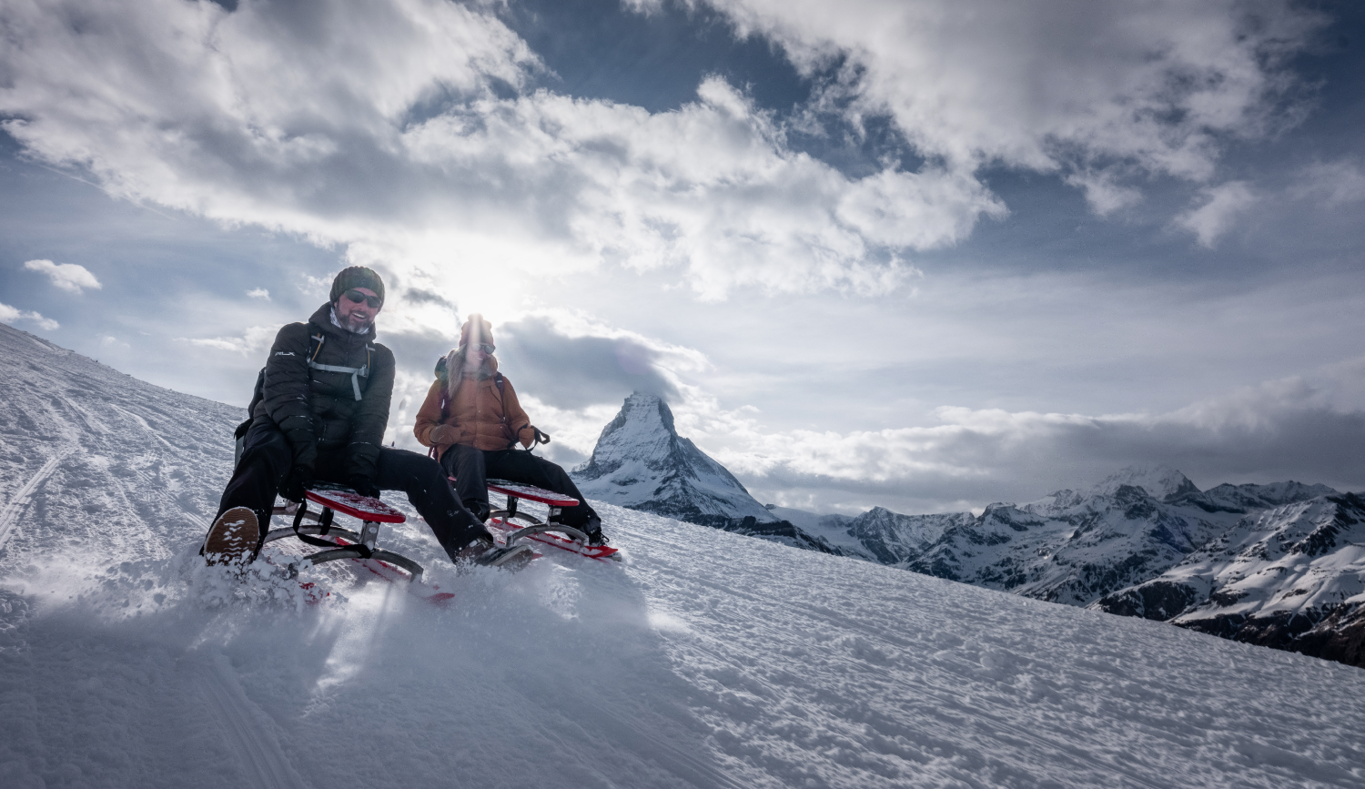 Our tip: rent a Snooc at the Rotenboden station and experience the latest trend in alpine sledding. A Snooc is a seat fixed onto a short ski, which you can steer with your weight or your legs and it’s great fun for everyone.