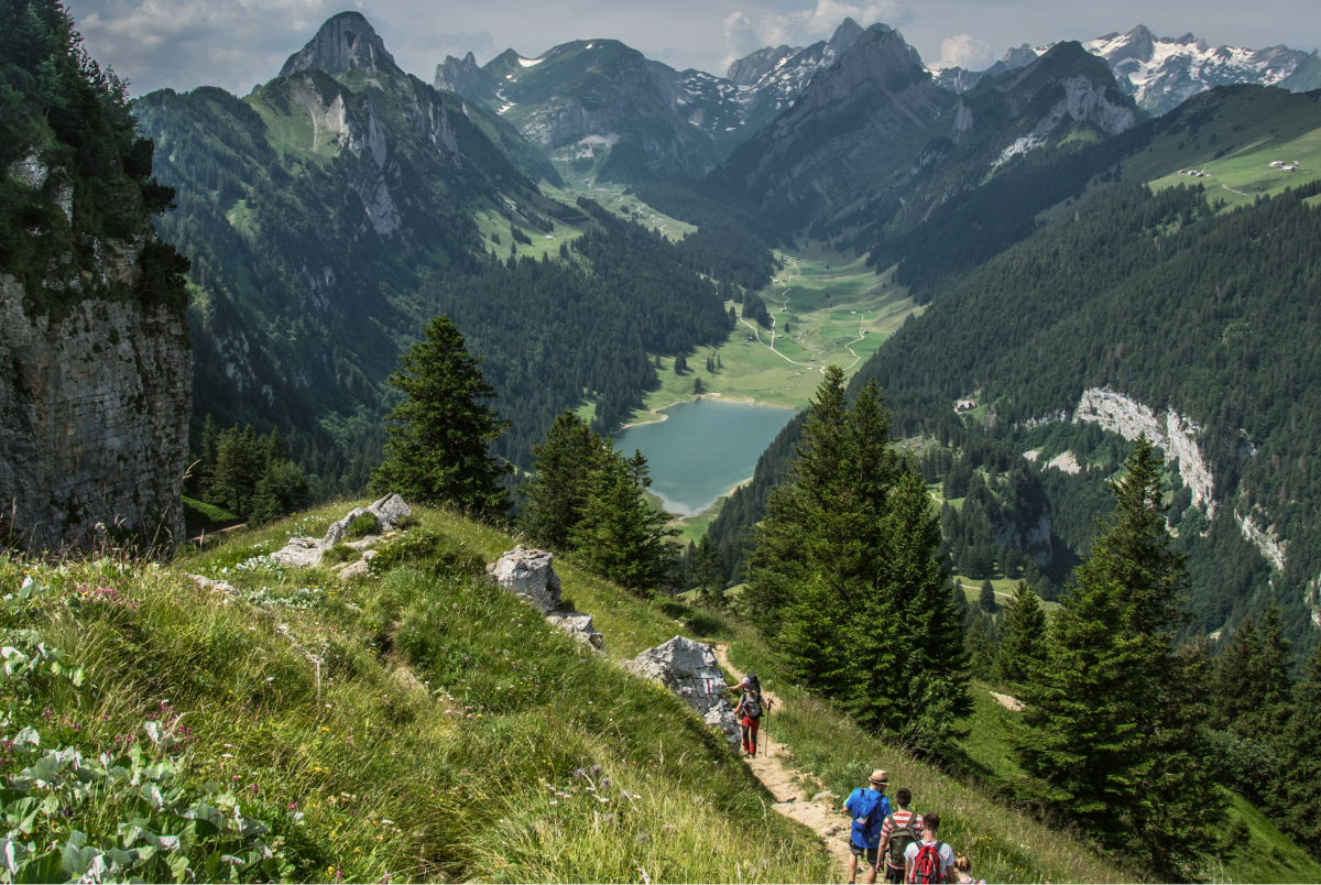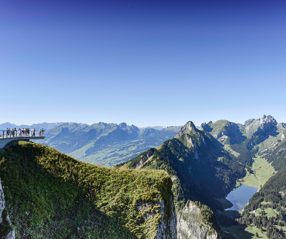 At every corner, the trail uncovers new immersive views: whether it's the 300+ peaks showing up, the view into the Rhine valley, the Alpstein and the Appenzellerland, or the two mountain lakes, Fälensee and Sämtisersee, you won't even notice the passing of time.