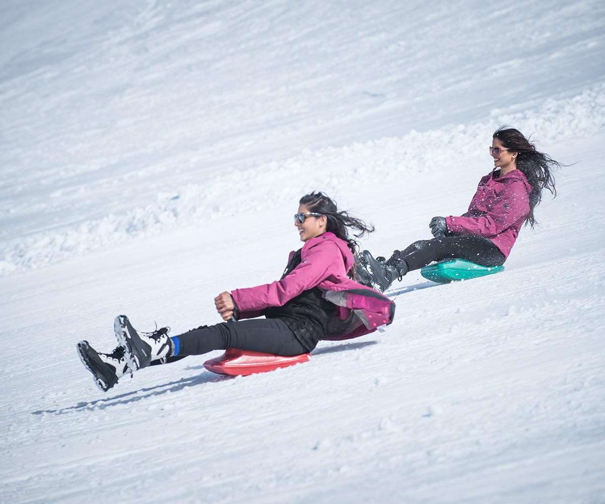 All kinds of exhilarating snow activities await in the glacier park in summer, from May to September. Whiz down the snow toy run on one of our fun sit-skis, snake gliss or minibobs and let our magic carpet conveyor belt whisk you quickly and easily back to the top.