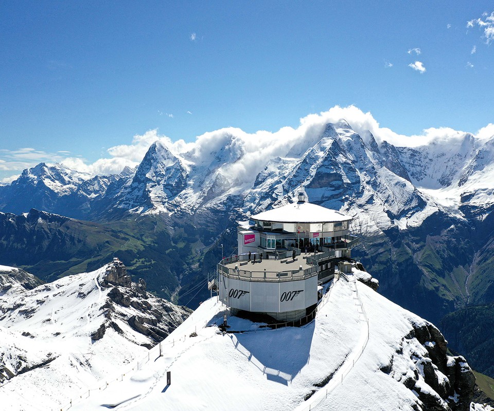 A stunning view requires a good meal. Fortunately, the Schilthorn peak is topped by Piz Gloria and the Piz Gloria Restaurant. The building rotates around its axis in 45 minutes, so diners can enjoy the James Bond Brunch (served until 2 pm) or the special 007 Burger while the view gently glides by. The menu features simple snacks to regional dishes and a few highlights inspired by Schilthorn’s role on the silver screen.