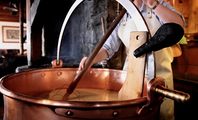 Traditional cheese making demonstration at the Le Chalet restaurant © Pays-d'Enhaut Tourisme